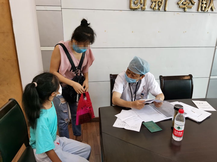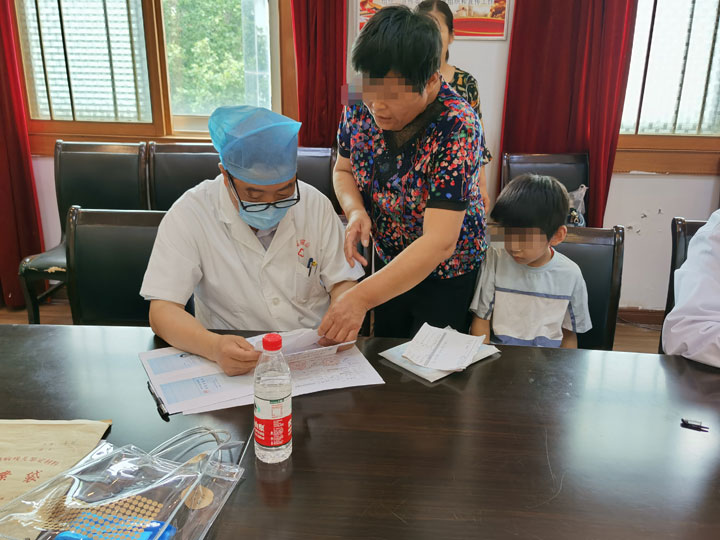 专家谢驰在询问和检查患儿