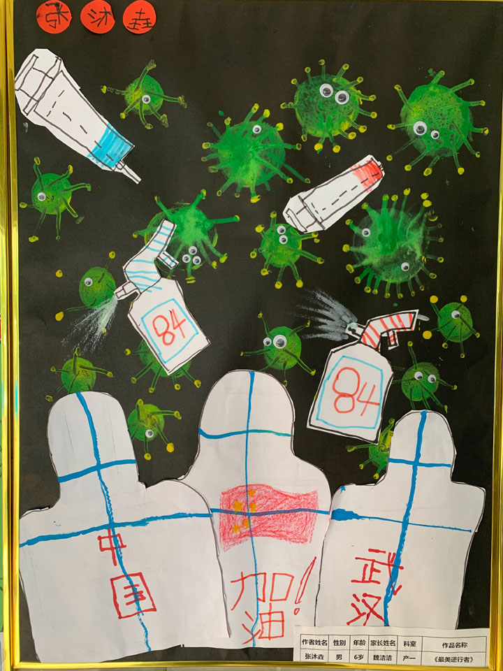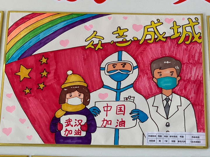 为助力全面打赢新冠肺炎疫情防控阻击战,同时为全院喜欢动手、爱好绘画、乐于创作的小朋友们提供展示平台,在六一国际儿童节来临之际,市妇幼保健院举办了以“加油!中国!共同抗疫!”为主题的儿童书画展,号召全院职工子女用画笔向奋战在抗“疫”一线的白衣天使们表达最崇高的敬意,为他们加油。