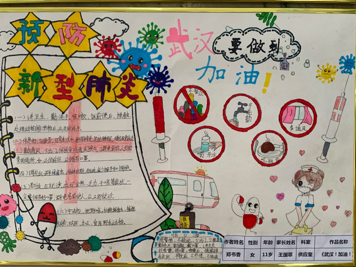开展此项书画展活动以来,每个参与活动的孩子都化身为一名出色的“战士”积极行动,拿起画笔制作手抄报、绘制宣传画。同时充分发挥“小手牵大手”的作用,共同表达抗击疫情的决心和信心,家长和孩子在参与绘画制作的过程中提高对疫情的认识,增强家长和孩子的自我防护意识。(工会)