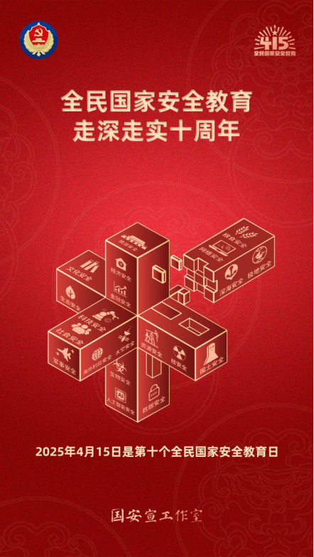 今年4月15日,是第十个全民国家安全教育日。十年来,在习近平新时代中国特色社会主义思想科学指引下,全民国家安全教育持续推进、不断深化,总体国家安全观的丰富内涵、科学体系、核心要义深入人心,全民国家安全意识和素养全面增强,人民群众参与国家安全治理的有效途径广泛拓展,国家安全的社会基础夯实巩固,全社会维护国家安全的强大合力汇聚形成。