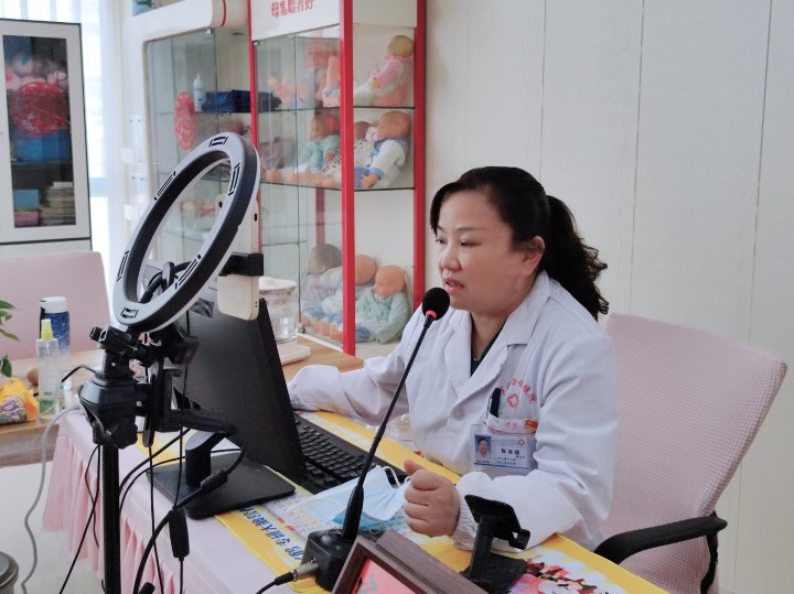 在孕妇学校,新生儿科副主任、主任医师张媛媛通过线上、线下同步课堂介绍了新生儿常见的皮肤、口腔、行为等特殊表现,让准爸爸准妈妈们初步了解新生儿常见的生理性与病理性表现,做到科学护理,尽早发现异常,及时就诊处置。