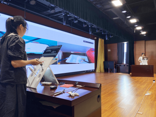 在随后举行淮南市第一届妇科腹腔镜微创技能竞赛中,来自全市多家医院的参赛选手参赛并顺利完成理论考核与实操演练。理论考试涵盖妇科微创技术原理、解剖知识及手术适应症等核心内容;实操环节则模拟真实手术场景,设置“腹腔镜下夹豆子”“剪圆”“缝合打结”三项挑战,考验选手器械操控精准度、手眼协调能力及细节处理水平。经过激烈角逐,淮南市妇幼保健院妇一科副主任医师陈莉莉凭借扎实的理论基础与娴熟的操作技巧,充分展现了该院妇科微创技术发展水平,赢得评委高度评价,最终以总分第一的成绩摘得桂冠。