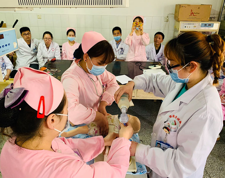 为进一步提高临床医护人员急救水平,明确医生护士抢救分工,保证抢救有条不紊,新生儿科按照医院工作安排,于4月18日15时组织科室全体医护人员在示教室开展了新生儿窒息复苏大演练。科主任汤广宇、护士长程晖现场指挥,医务科副科长宋慧到场观摩指导。