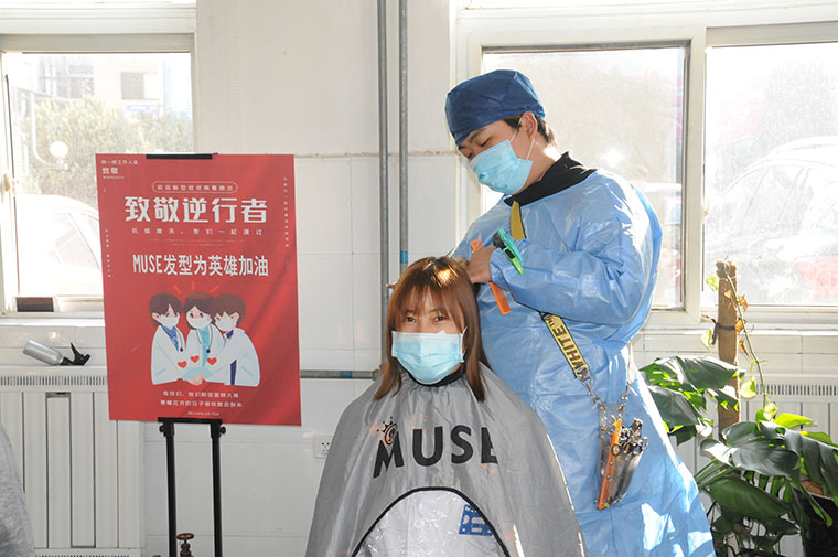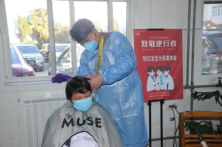 2月17日,在市妇幼保健院,三位发型师穿着隔离衣,戴着帽子、口罩,正熟练地为医务人员理发。“为了抗击疫情,医院不少人从年前到现在都没有时间理发。我的工作室现在也没营业,我就想着帮大家做点事。” MUSE发型工作室的发型师汪冬说。