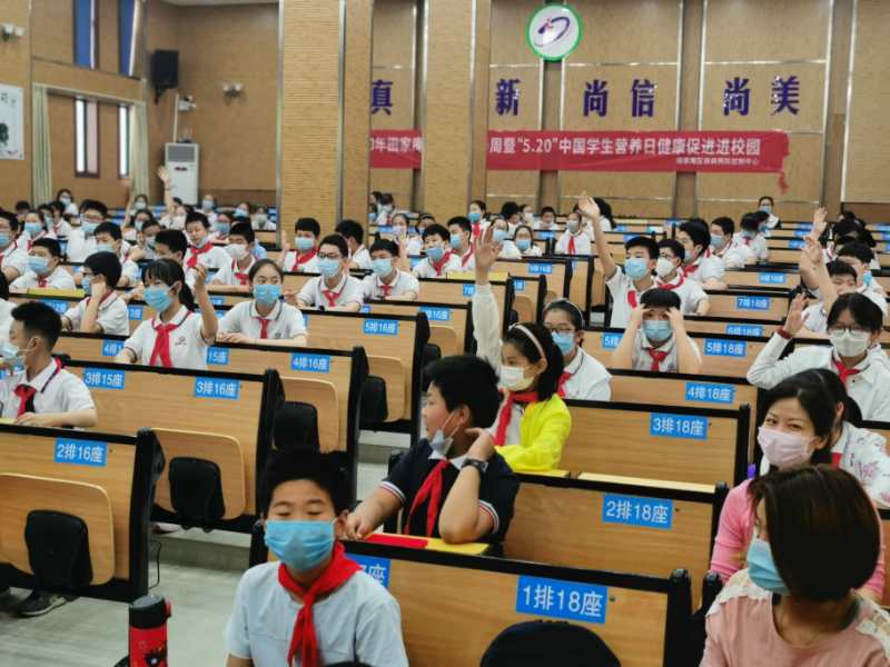 廖主任从我国学生营养现状、健康膳食、健康生活方式并结合新冠疫情防控,围绕如何提高免疫力、健康饮食选择、保持营养水平又不过度营养等方面对洞山中学的师生进行了深入浅出、通俗易懂的讲解,指导在场的师生要合理的饮食、加强营养,积极运动,养成良好的生活习惯,着力提升自身免疫力。廖主任在讲课的同时穿插有奖问答,寓教于乐,和在场的学生进行互动,带动了全场的学习热情,讲座现场气氛热烈。
