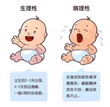 病理性黄疸:生后24小时即出现黄疸,每日血清胆红素升高超过5mg/dl或每小时>0.5mg/dl;持续时间长,足月儿>2周,早产儿>4周仍不退,甚至继续加深加重或消退后重复出现或生后一周至数周内才开始出现黄疸。