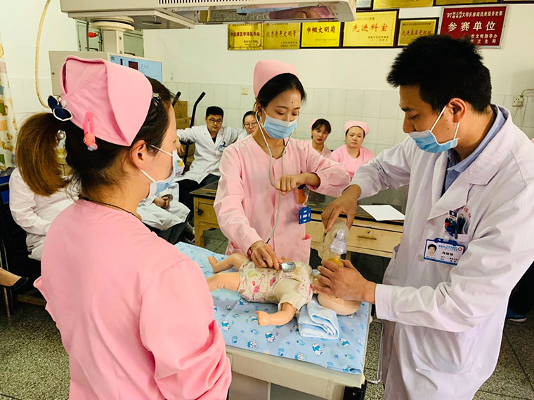 为进一步提高临床医护人员急救水平,明确医生护士抢救分工,保证抢救有条不紊,新生儿科按照医院工作安排,于4月18日15时组织科室全体医护人员在示教室开展了新生儿窒息复苏大演练。科主任汤广宇、护士长程晖现场指挥,医务科副科长宋慧到场观摩指导。